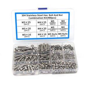 304 SS Hex Bolts Nuts Washers(flat and lock type) 480pcs